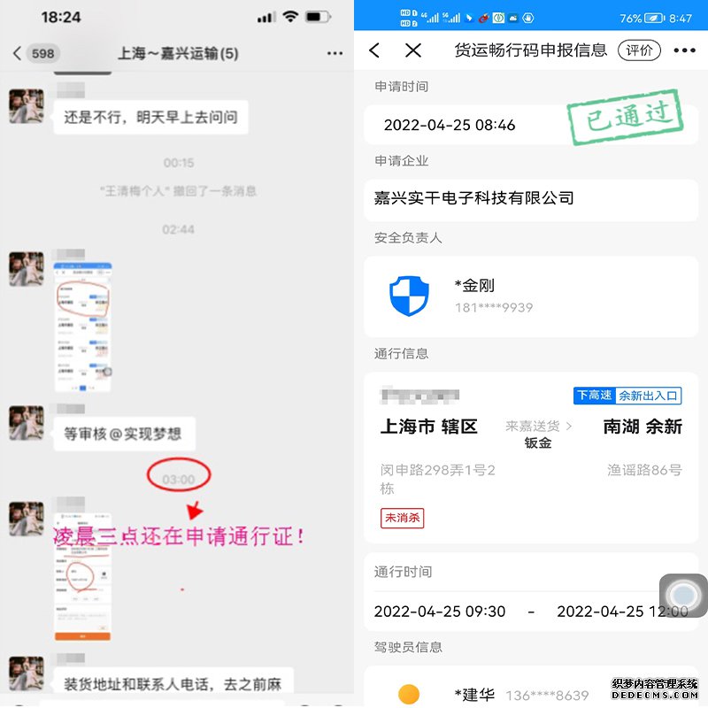 (為了物資早日到達,凌晨三點嘉興的同事還在申請通行證)